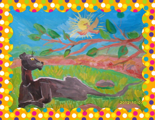 Второе место -В джунглях Михалевич Олеся, педагог Баранникова Ольга Юрьевна. Детская художественная школа №4 "им. П.И.Котова", Астраханская область, г.Ахтубинск
