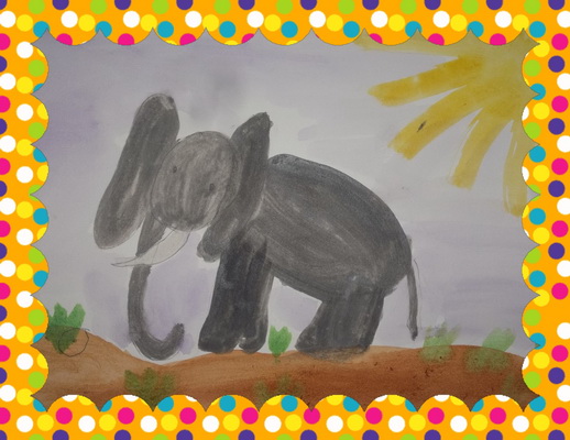 Третье место -Африканские слоны. Трофимова Софья, педагог Сырых Наталья Владимировна. Детский сад №1194 "Букетик", г.Москва