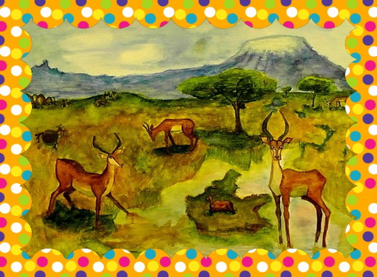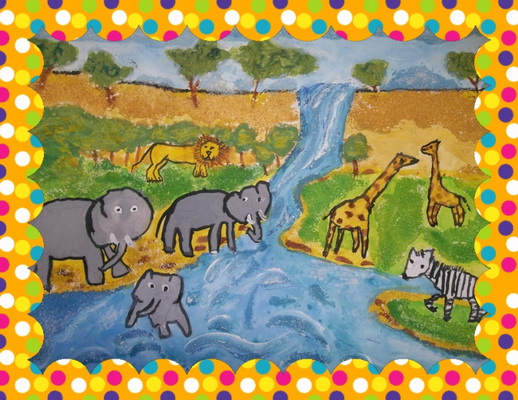 Победитель -Животные у водопоя. Зылева Ангелина, педагог Митюшкина Елена Анатольевна. Детский сад №1524, г.Москва