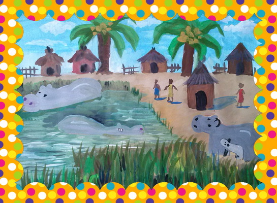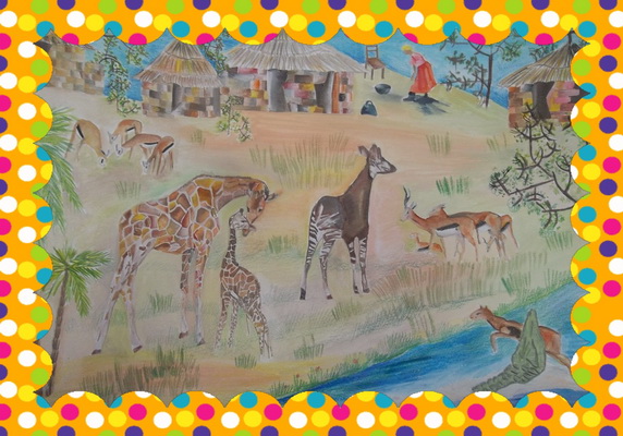 Второе место -Жизнь в Африке. Коробейникова Анастасия, педагог Богачева Милана Сергеевна. Детская художественная школа, Ставропольский край, п.Солнечнодольск