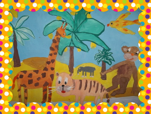 Второе место -Праздник джунглей Ерина Анастасия, педагог Керченко Мария Александровна. Детская художественная школа, Ставропольский край, п.Солнечнодольск