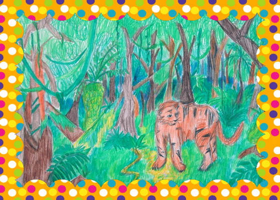 Третье место -Джунгли зовут. Привалова Анастасия, педагог Богачева Милана Сергеевна. Детская художественная школа, Ставропольский край, п.Солнечнодольск