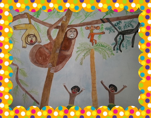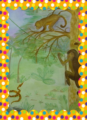 Второе место -Обезьяны и лианы Коскова Полина, педагог Чулочникова Светлана Витальевна. Средняя общеобразовательная школа №1, Свердловская область, г.Арамиль