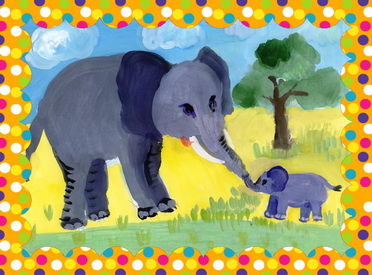 Второе место -Слон по африке идет Воротникова Влада, педагог Грищенко Екатерина Викторовна. Студия начального изобразительного искусства, Воронежская область, г.Воронеж