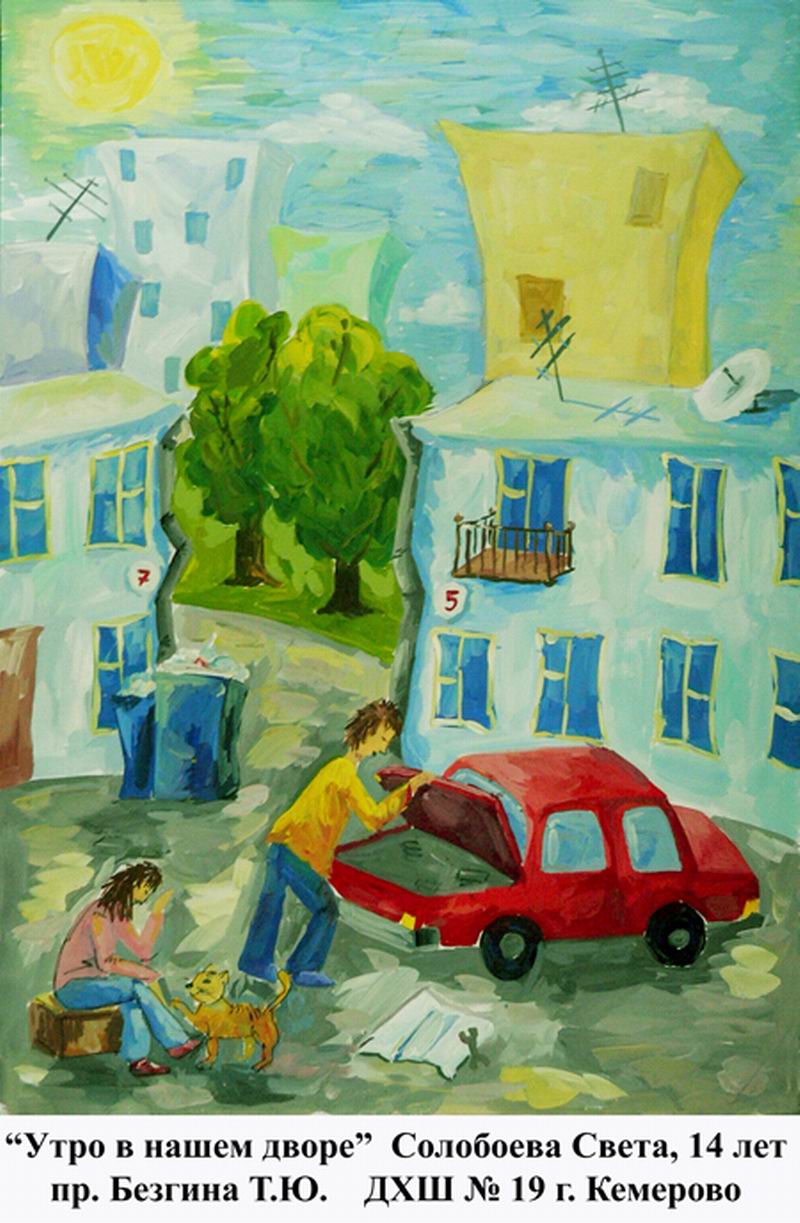 Второе место - Утро в нашем дворе Солобоева Света, Дополнительного образования детей № 19, г. Кемерово