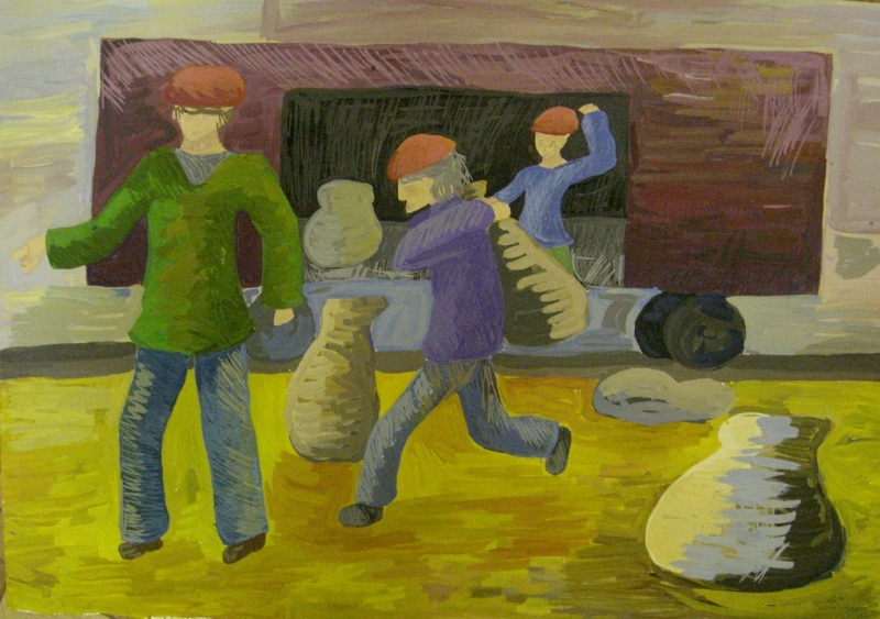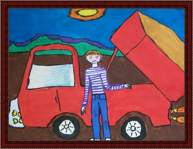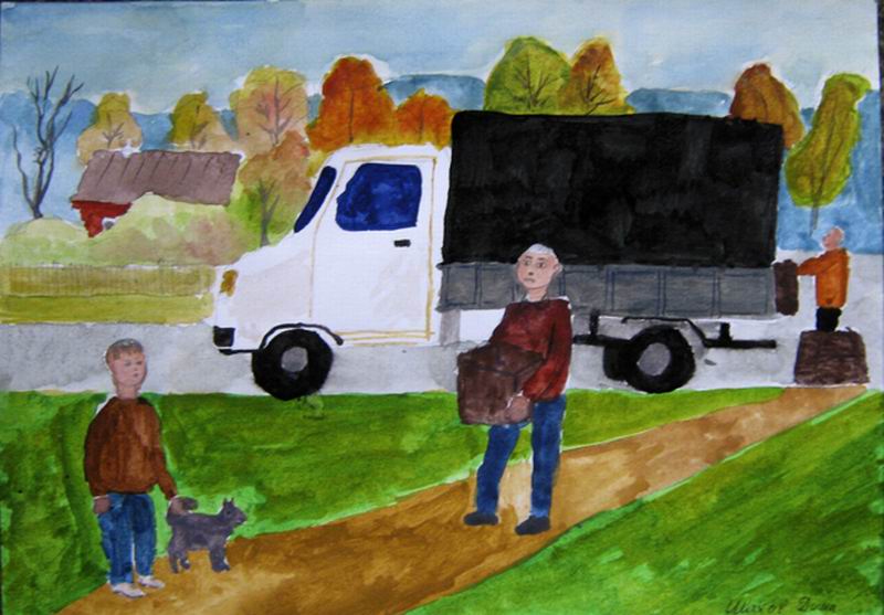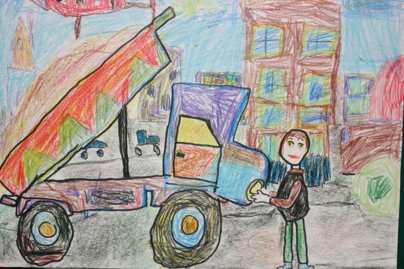 Второе место - "Разгрузка автофургона" Денисевич Вика, Детская художественная школа, г. Щелково