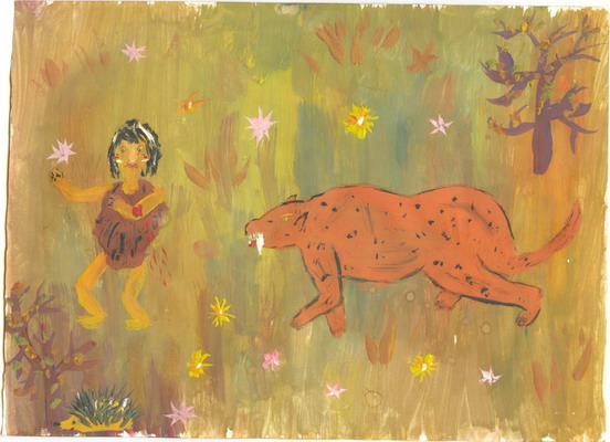 Победитель - Нападение на доисторического тигра Тихомирова Ольга. Средняя общеобразовательная школа № 2, г. Спас-Деменск