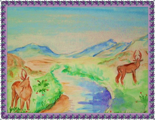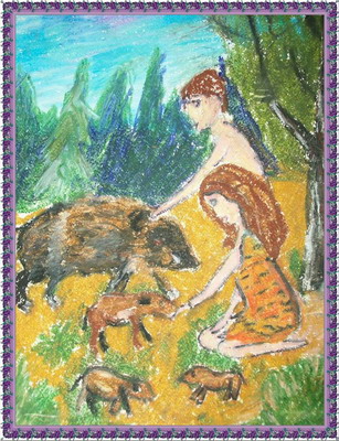 Второе место - Дружба детей и зверей Щербунова женя. Детская школа искусств им.С. Т. Рихтера
