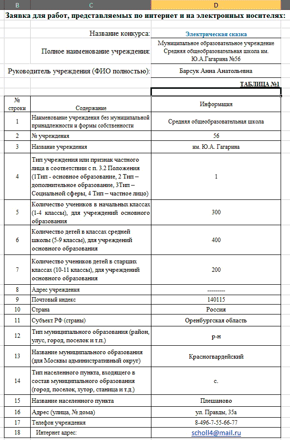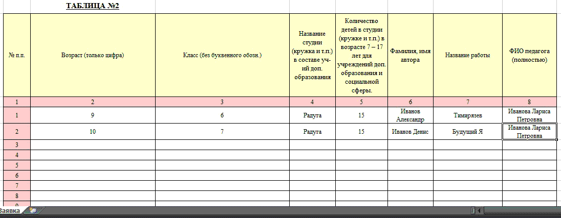 Учреждения дополнительного образования данную колонку могут не заполнять.