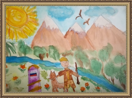 Второе место -Мы на заставе! Фармаковская Альбина, педагог Рябова Татьяна Александровна. Средняя общеобразовательная школа №63 , Москва ,