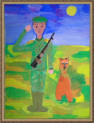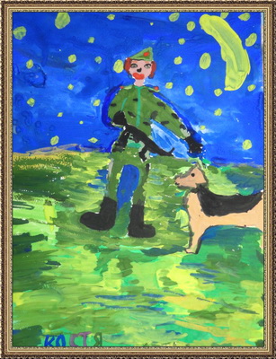 Второе место -Мы с Джульбарсом на границе Шалыгина Саша, педагог Харитонова Эльмира Эмирусейновна. Центр внешкольной работы , Владимирская область , г. Камешково