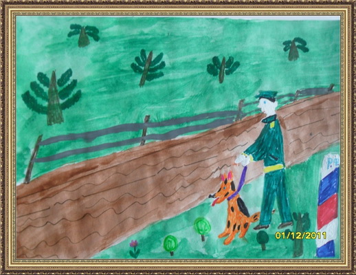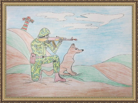 Второе место -"На страже" Линейцева Олеся, педагог Евстифеева Валентина Анатольевна. Средняя общеобразовательная школа , Республика Бурятия , п. Саган-Нур