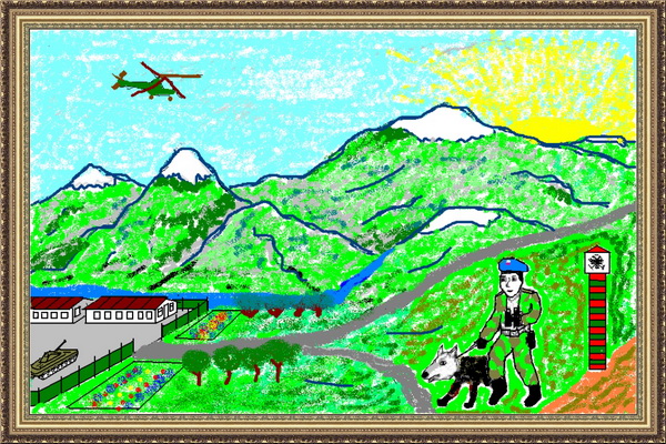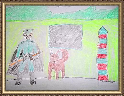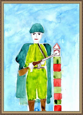 Третье место -Влюбую погоду на страже границы! Бойцова Юлия, педагог Шарафутдинова Гюзель Тахировна. Детская художественная школа №2 , Республика Татарстан , г. Набережные Челны