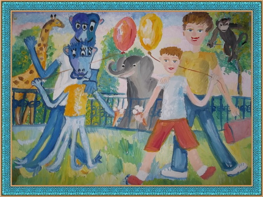 Победитель -Мы с папами в зоопарке Иванова Ксения, педагог Ильина Лариса Николаевна. Детская художественная школа №6 им. Акцыновых, г. Чебоксары