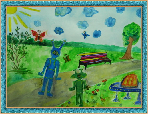 Победитель -Инопланетянин и матрешка Панина Анастасия, педагог Собакина Дина Анатольевна.. Детская художественная школа №6 им. Акцыновых, г. Чебоксары