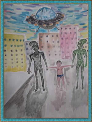 Второе место -Пришельцы в Нефтеюганске Николаева Анастасия, педагог Алиева Луиза Наримановна. Средняя общеобразовательная школа №1, г. Нефтеюганск