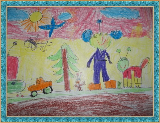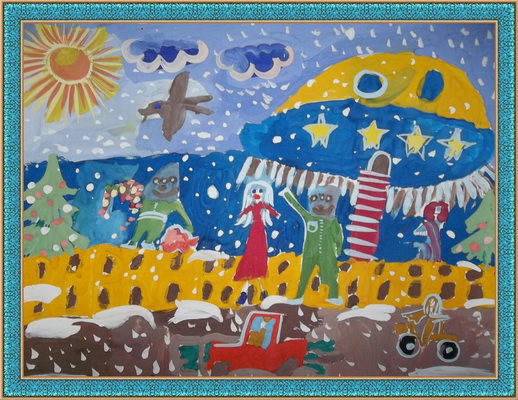 Третье место -Привет земляне Хван Виктория, педагог Бердникова Елена Геннадьевна. Детская художественная школа, г. Вятские Поляны