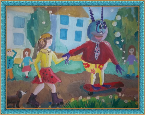 Второе место -Инопланетный дозор Обухова Ксения, педагог Каминская Галина Георгиевна. Детская школа искусств "Ритм", п. Мирный