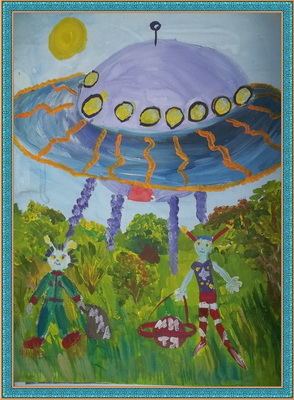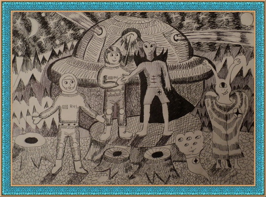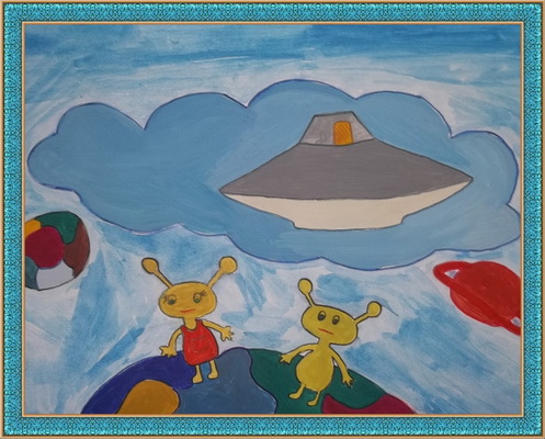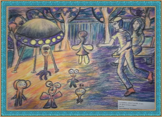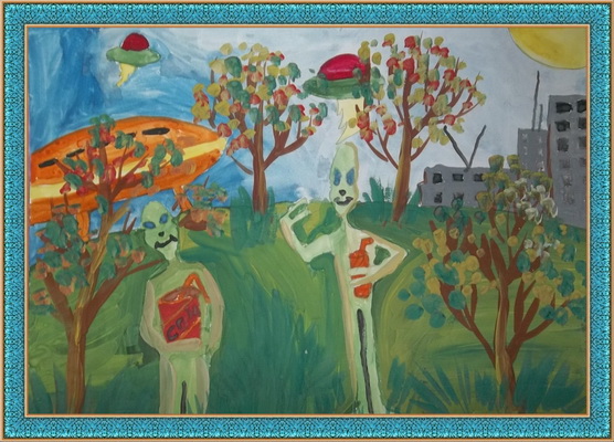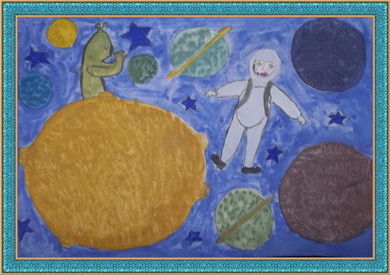 Третье место -Встреча инопланетян с российскими космонавтами Лукин Илья, педагог Тимохина Надежда Валентиновна. Детская школа искусств, п. Таврическое