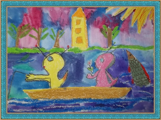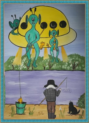 Второе место -Пришельцы на рыбалке Королёва Елена, педагог Сыромягина Анджела Эриковна. Центр эстетического воспитания детей "Нефтяник", г. Омск