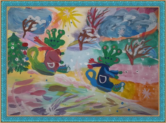 Победитель -Новогодним днем на горке Климко Полина, педагог Цыганкова Оксана Сергеевна. Центр эстетического воспитания детей "Нефтяник", г. Омск