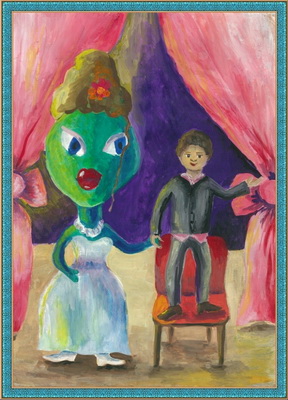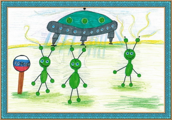 Третье место -Дружба с инопланетянами Хренникова Ангелина, педагог Мельникова Елена Алексеевна. Художественная школа, г. Оренбург
