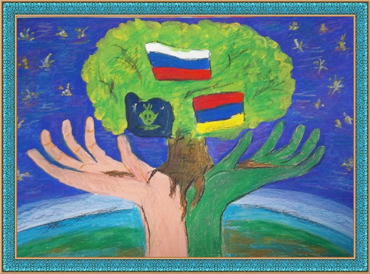 Второе место -Россия в дружбе с иными цивилизациями Богданова Александра, педагог Милованова Лариса Владимировна. Детская художественная школа, г. Батайск