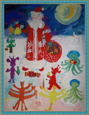 Третье место -Дети-инопланетяне пришлин на елку к Дуде Морозу Бондаренко Алиса, педагог Смирнова Елена Петровна. Детская школа искусств №2, г. Жигулевск