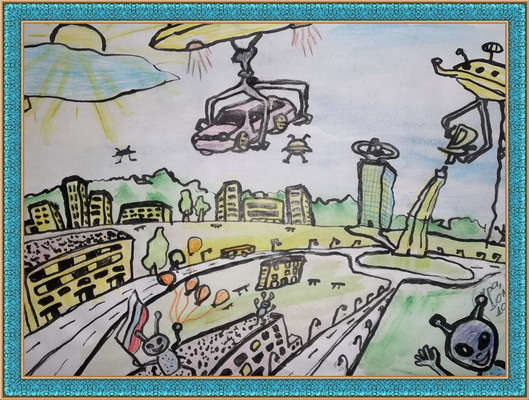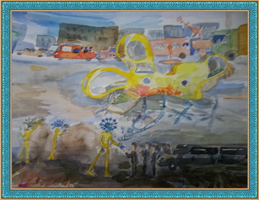 Третье место -Инопланетяне в городе Призимирскпая Надя, педагог Подкорытова Людмила Олеговна. Детская школа искусств №7, г. Самара