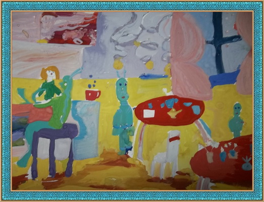 Третье место -Инопланетяне зашли в кафе Копытцева Лиза, педагог Смирнова Елена Петровна. Детская школа искусств №2, г. Жигулевск