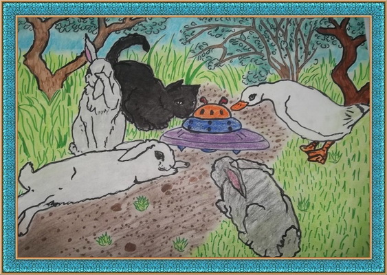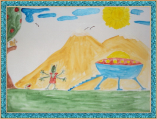 Победитель -Инопланетяне в деревне Сапожкова Яна, педагог Кутумова Оксана Юрьевна. Детский сад №12, г. Отрадный
