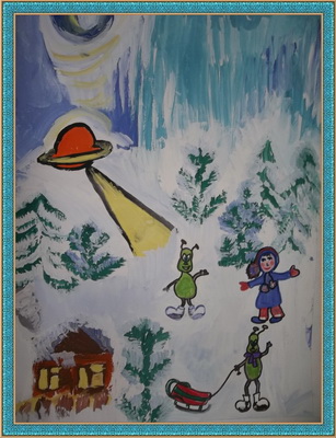 Победитель -Приключение зеленых человечков зимой в лесу Кирсанова Кира, педагог Яковлева Татьяна Николаевна. Детский сад №160 "Дубравушка", г. Тольятти