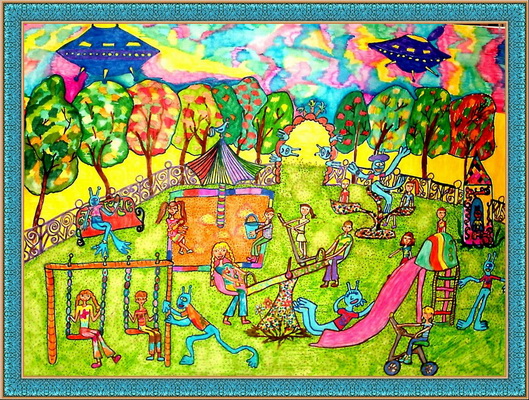 Второе место -Инопланетяне на детской площадке Холодная Настя, педагог Подкорытова Людмила Олеговна. Детская школа искусств №7, г. Самара