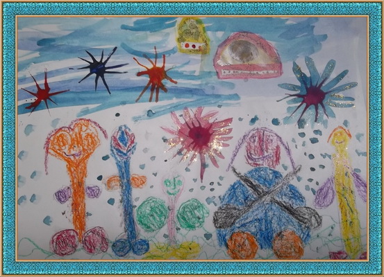 Третье место -И звёзды в небе… Дорохова Василиса, педагог Руссова Татьяна Валерьевна. Детский сад "Солнышко", п. Каменск