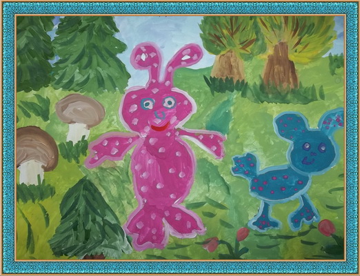 Победитель -Инопланетяне на лесной опушке, собирают грибы Шингер Дарья, педагог Литвинова Ирина Александровна. Детская художественная школа им. Н.В.Овечкина, Ростовская область, г. Новошахтинск