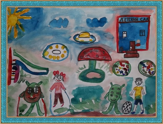 Второе место -Инопланетяне в дестком саду Муханов Ильнар, педагог Нугманова Р.К. Средняя общеобразовательная школа им. Абая Кунанбаева, Астраханская область, с. Малый Арал