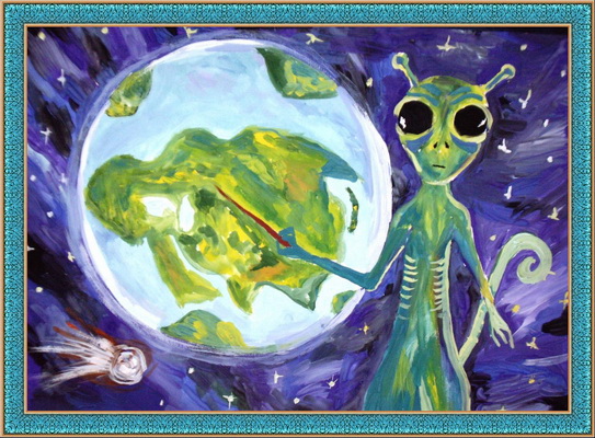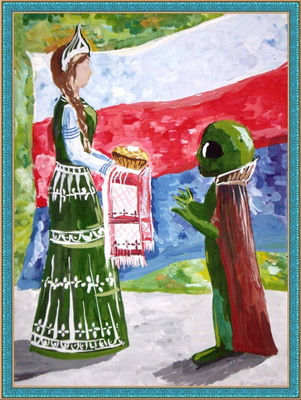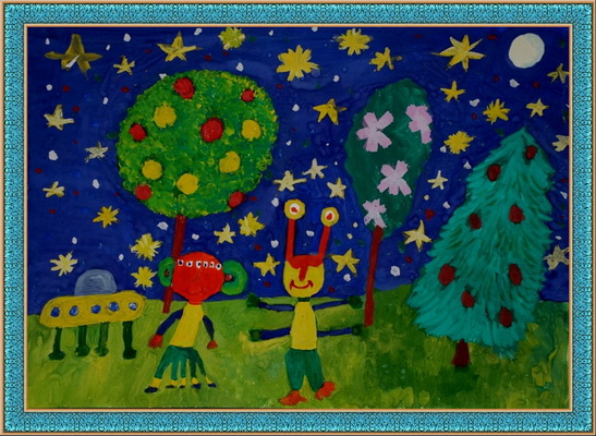 Второе место -Встреча инопланетного гостя Нестеренко Екатерина, педагог Безрукова Ирина Валерьевна. Детская художественная школа №4 им. П.И.Котова, Астраханская область, г. Ахтубинск