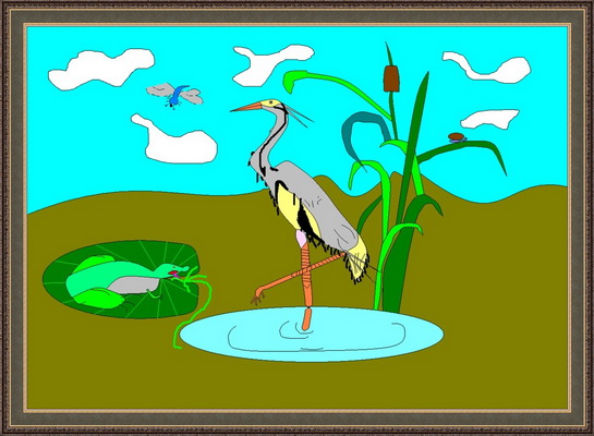 Третье место -Цапля - охотница за лягушками Кипоть Витя, педагог Казакова Ирина Георгиевна. Детско-юношеский центр, Иркутская область, г.Усть-Кутское