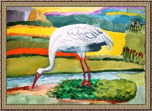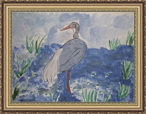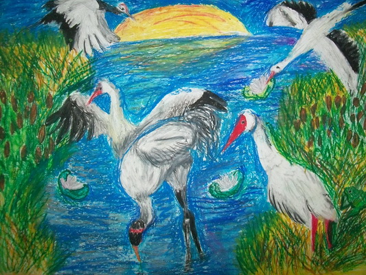 Третье место -Даурский журавль в тумане Горбатенко Даша, педагог Мерц Наталья Валентиновна. Средняя общеобразовательная школа №6, г.Урай