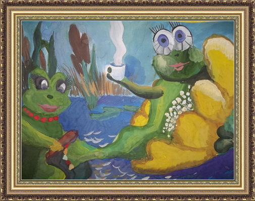 Второе место -Лягушка громко квакала и никогда не плакала! Гусейнова Наджиба, педагог Мухаметдинова Фания Ракиповна. Детская художественная школа, Кировская область, г.Вятские Поляны