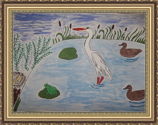 Третье место -"О цапля! Она благородная птица!", Линд Себастьян, педагог Карпухина Светлана Владиславовна. Развивающий детский центр "Озорник", Московская область, г.Ступино
