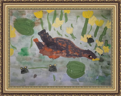 Третье место -"У нас в пруду новый сосед", Козлова Любовь, педагог Медведева Ирина Анатольевна. Центр детского творчества, Московская область, г.Пушкино