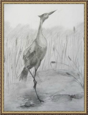 Третье место -"Одинокая цапля", Даша Кушниренко, педагог Гвоздюк Владимир Еремеевич. Художественная школа, Московская область, г.Протвино