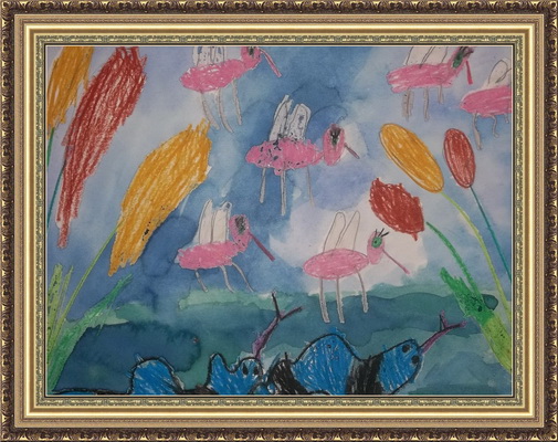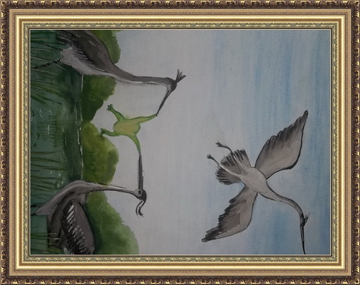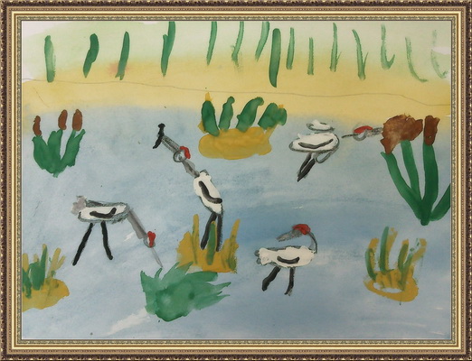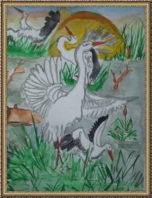 Второе место -"Журавли на болоте", Ярослав Ротов, педагог Волкова Лариса Александровна. Детский сад №26 "Василёк", Московская область, с.Григорьевское