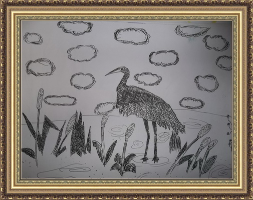 Третье место -Цапля на болоте Шорникова Елизавета, педагог Шорникова Галина Владимировна. Детский сад №30 "Солнышко,посещает изостудию", Владимирская область, г.Вязники
