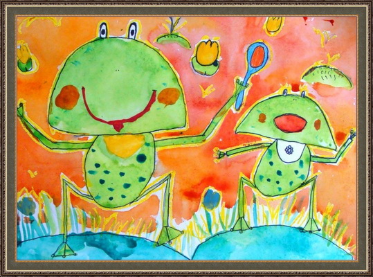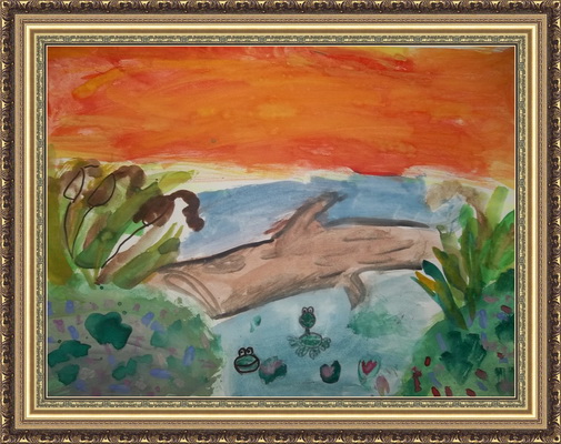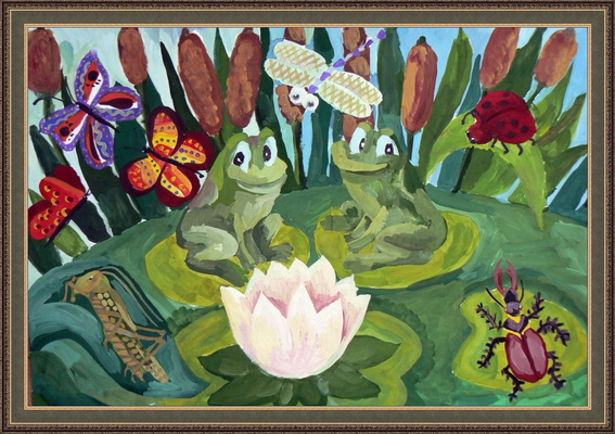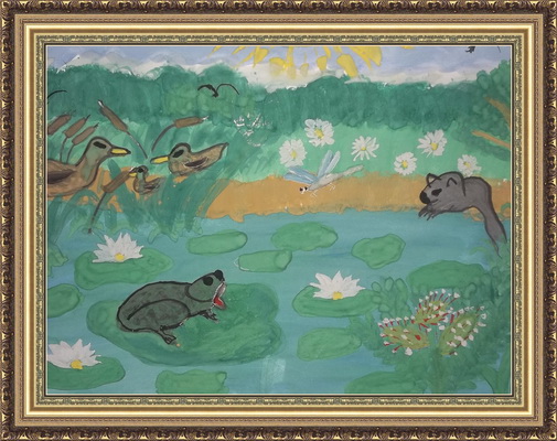 Второе место -Лягушки в болоте Галиев Тимур, педагог Андреева Татьяна Алексеевна. Детская художественная школа, Республика Башкортостан, г.Салават