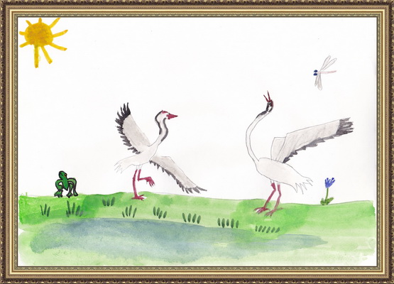 Второе место -Журавли Пшенничникова Екатерина, педагог Ягнышева Татьяна Илинична. Гимназия "Эврика", Республика Саха (Якутия), г.Олёкминск