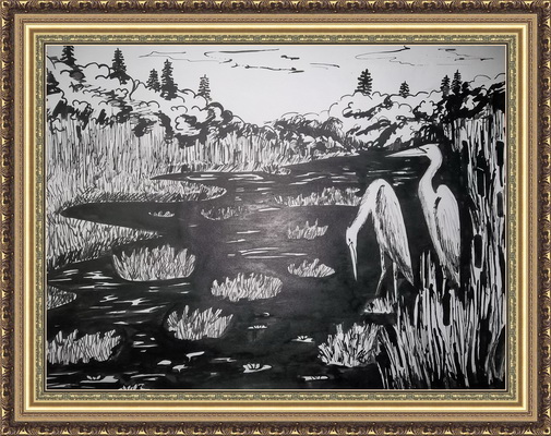 Третье место -Ночная жизнь на болоте Афашагова Анна, педагог Воронова Надежда Эдуардовна. Детская художественная школа, Забайкальский край, г.Краснокаменск