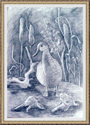 Третье место -Серый гусь в зарослях сабельника болотного Овчаров Слава, педагог Антипина Людмила Владимировна. Социально-реабилитационный центр для несовершеннолетних, Иркутская область, г.Иркутск
