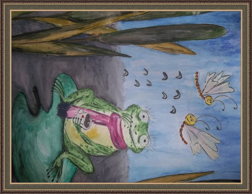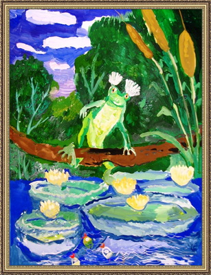 Третье место -Лягушка на болоте Понюкова Эллина, педагог Овчинникова Алевтина Викторовна. Средняя общеобразовательная школа №33 "им. Н.Мордовиной", Астраханская область, г.Астрахань